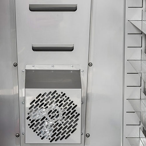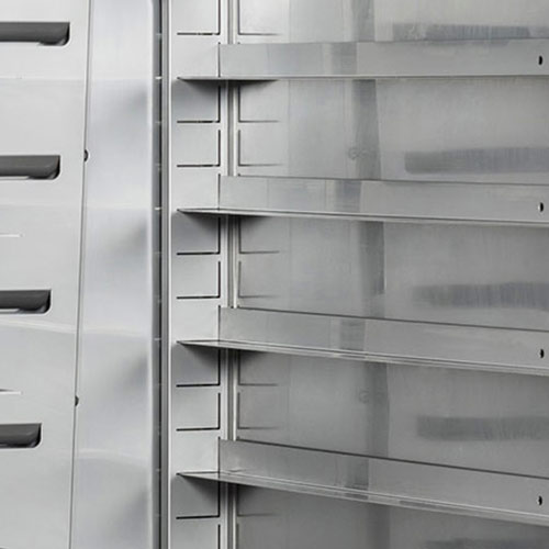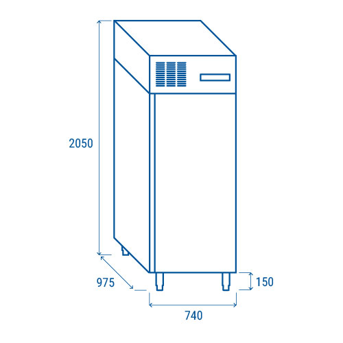 Hladilna omara BY 800 je v celoti narejena iz inoxa. Opremljena je s statičnim hlajenjem in avtomatskim odtajevanjem. Debelina izolacije je 60 mm. Izredno kvalitetna magnetna tesnila vrat, katera se lahko tudi zamenjajo. Led osvetlitev. Vrata se lahko nastavi po želji – levo ali desno odpiranje. Vrata se zapirajo sama in s tem se prepreči odvečno uhajanje hladnega zraka. Vključena ključavnica. Primerna za pekarstvo in slaščičarstvo.