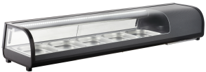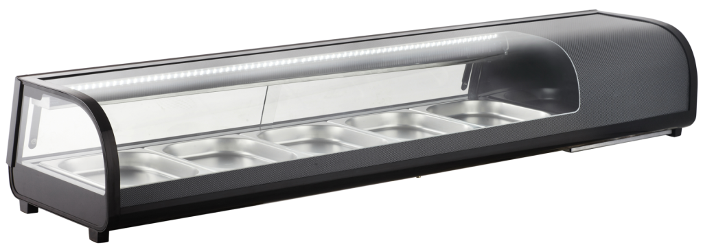 V vitrinah za suši MAYWAY lahko na apetiten in privlačen način predstavite suši, prigrizke in druge prigrizke. Sodoben, oblikovno privlačen design v kombinaciji z ukrivljenim sprednjim steklom naredi vitrino pravo pašo za oči. Pokažite svojo hrano v najboljši luči in hkrati izkoristite prednosti konstantnega in učinkovitega hlajenja z nizko porabo energije.