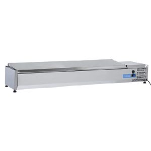 Namiznahladilna vitrina VRX 18/38S/S je v celoti narejena iz inoxa. Primerna je za 8 xGN1/3 posode. Opremljena je s statičnim hlajenjem in digitalnim termostatom.Nastavljive nogice. GN posode niso vključene.